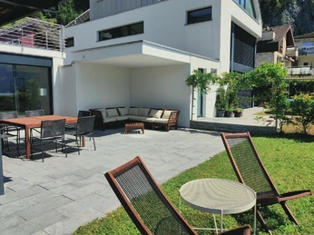 We are offering a dream villa with direct access to the lake in Sisikon, directly on Lake Lucerne with an idyllic panoramic view of the lake and mountains. You have an unobstructed view of the mountain landscape and the lake. A private bathing area on the lake with bathing ladder is available for your use. The house is fully furnished and modernly equipped. All you need to do is bring your suitcases. On the ground floor is the living area with kitchen, conservatory and guest WC. Direct access to the private garden, from which you also have direct access to the sunbathing lawn by the lake. The garden is equipped with a dining table and sun loungers, parasol and barbecue. It is also possible to book the villa for 1-4 people with reduced space. Depending on the number of people or your individual needs, the available space can be customised and individual bedrooms and bathrooms can be booked. When booking for 1-2 people, you will receive a bedroom with en suite bathroom and separate guest WC as standard. For 3-4 people, a second bedroom and a second bathroom. For an additional charge, a third bedroom can also be booked according to your requirements.