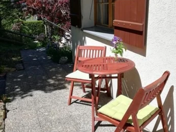 Top level After you've entered the house you will find a bathroom with a bath/shower on your left. On your right there's a single bedroom 140x200 boxspring bed (that fits also for 2 small children) and a office workspace (22inch display and keyboard/mouse is available). Next bedroom on your right is the main double. The living room is fully furnished, Internet/TV, radio/Hi-Fi and a log burner. From there you can reach the balcony with the BBQ. The kitchen is fully equipped with induction cooker, oven, microwave, fridge, Nespresso coffee machine, dish washer, table grill, fondue-set. We also provide a laptop and board games. Base level Downstairs you'll find an utility room with washing machine and a shower. You will also find an additional room with a double Boxspring bed and access to the terrace. The house has a heat pump with underfloor heating which can be controlled remotely.