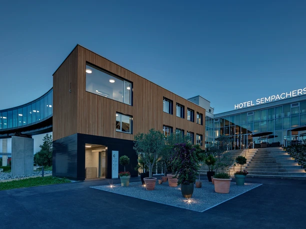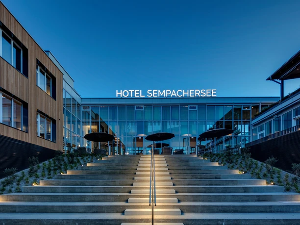Located in the heart of Switzerland, outfitted with modern facilities, and fully tailored to your needs, the Hotel Sempachersee ensures that your stay near Lucerne will be a restful experience. The hotel’s restaurants, bars, lobby and reception area, and above all the conference infrastructure itself, were given a comprehensive makeover and a brand new lease of life in 2017. The underground car park has 300 parking spaces. Together with the innovative outdoor conference platforms, the modernised conference rooms, which are cooled with lake water, represent a source of added dynamism for successful conferences. The 150 newly designed hotel rooms, spread across five pavilions and the separate hotel annexe, impress guests with their stylish interior and offer a high level of comfort. Some of them are configured for wheelchair users.