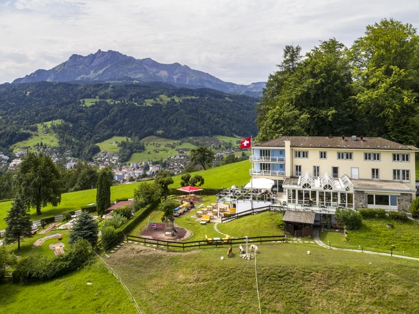 Hotel Sonnenberg in Kriens offers a unique panoramic view of Lake Lucerne and the foothills of the Alps. The rooms have wooden floors and are equipped with a Nespresso coffee machine, mineral water and free WLAN. Enjoy seasonal delicacies in the winter garden or on the terrace while admiring the breathtaking view over Lucerne. In addition, the Hotel Sonnenberg has an 18-hole mini-golf course and a playground with garden railway. You can reach the Hotel Sonnenberg by car in 10 minutes from Lucerne or by the historic cable car, which runs from April to November, from Kriens in 15 minutes. In winter the hotel offers a shuttle service on request. You can park your car free of charge in the hotel's own car park. During your stay you benefit from a free ticket for public transport in Lucerne as well as other discounts in the region.