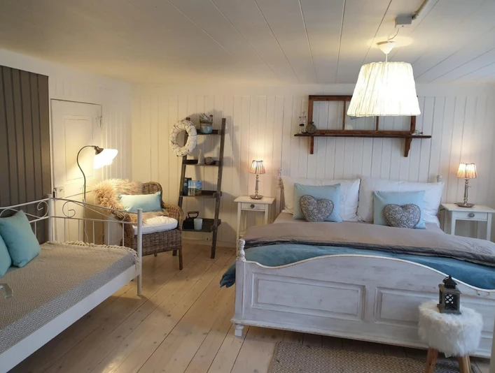 Renovated in 2017 with great attention to detail. The flat is located on the ground floor of a 200 year old farmhouse. It is heated with a wood-burning stove in the kitchen and a wood-burning stove in the living room.