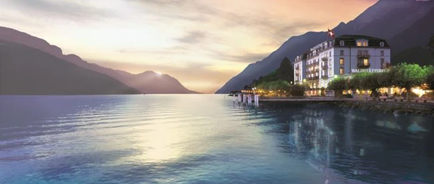 The Seehotel Waldstaetterhof is in a wonderful and peaceful location on the shores of Lake Lucerne in Brunnen, set in a private park, with views across to the alpine peaks.