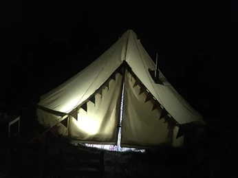 - There is no electricity at the tent site. There are lanterns and a battery-powered spotlight for light in the tent (power bank for USB chargers).