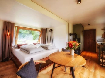 "Walter", the self-sufficient Tiny House, is located in the middle of the local Schwyz mountains. More precisely in Rothenthurm at 953 metres above sea level. With its rustic and cosy charm, the Tiny House offers a special kind of time-out that appeals to all the senses. It is an extraordinary place where lifelong memories are created and time passes noticeably slower. "Back to the roots" is not just a phrase for us, it is a return to a place that lies deep within us all. - A place where we feel at home. The Walter Tiny House offers cosiness with that certain something.