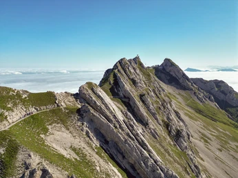 Once at the top, an easy hike takes us to the Tomlishorn - the highest point on Mount Pilatus. At 2'132 metres above sea level, the views are spectacular and with a bit of luck you might even spot an ibex. During the hike our guide will tell you interesting facts about the mountain, its flora and fauna and its legends, such as the Pilatus dragons.