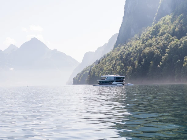 From Lucerne to Kehrsiten-Bürgenstock and back: a round trip with city views at the start and finish. Along the way, the Bürgenstock, Rigi and Pilatus reveal their full splendour.