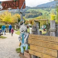 The more children there are, the more exciting it gets at the Entlebuch Energy Playground, because many of the playground equipment is linked together. The bigger kids frantically shovel wood chips onto a conveyor belt and use cranks to move the chips upwards, where they fall into a metal hopper. This drives a paddle wheel, which in turn sets a pump in motion. Patience is rewarded, because now the water gushes towards the moat, setting the water wheel in motion.