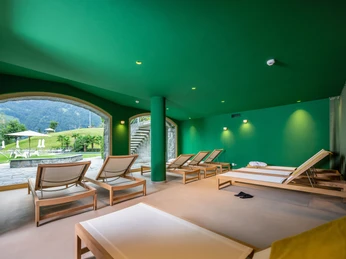 There is an outdoor wellness centre with a small indoor area in the spacious hotel park. Here you will find everything you need to relax: A swimming pool (April to October), an outdoor whirlpool, a Finnish sauna and a sunbathing lawn with fantastic views of the lake and mountains. Inside, guests have access to a bio-sauna, a steam bath and a relaxation room.
