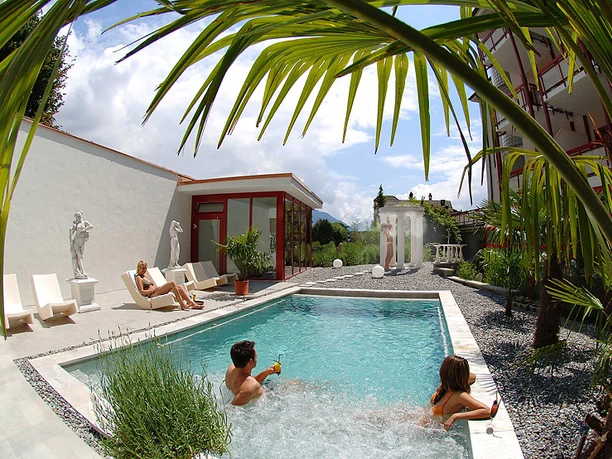 Finnish sauna and herbal saunaAroma steam bath and caldariumShower area with cold mist shower, bucket shower and tropical rain showerBrine bath in the outdoor area (35 °C all year round)Plunge poolNumerous beauty and wellness treatmentsRelaxation room with Himalayan salt wallFitness room with the latest generation of Technogym training equipment
