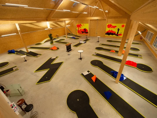 The old barn was converted into an indoor minigolf course, helping to preserve the building, which is worthy of protection. The courses were installed by a specialized Dutch company, which increases the added value for the Muff family and expands the range of leisure activities in the region.