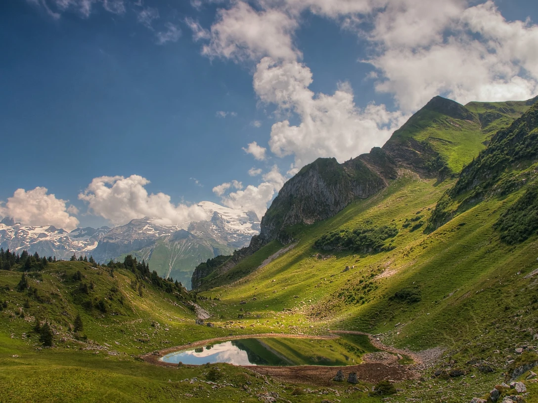 The Mettlen-Rugisbalm and Rugisbalm-Lutersee cable cars take you to a beautiful view point. From the Lutersee mountain station, follow the gravel road to Eggen. After 1 hour and 15 minutes (3.2 km, approx. 300 m difference in altitude) you reach the Lutersee, 1740 m above sea level. In fine weather the idyllic mountain lake reflects the famous Titlis on its water surface.
