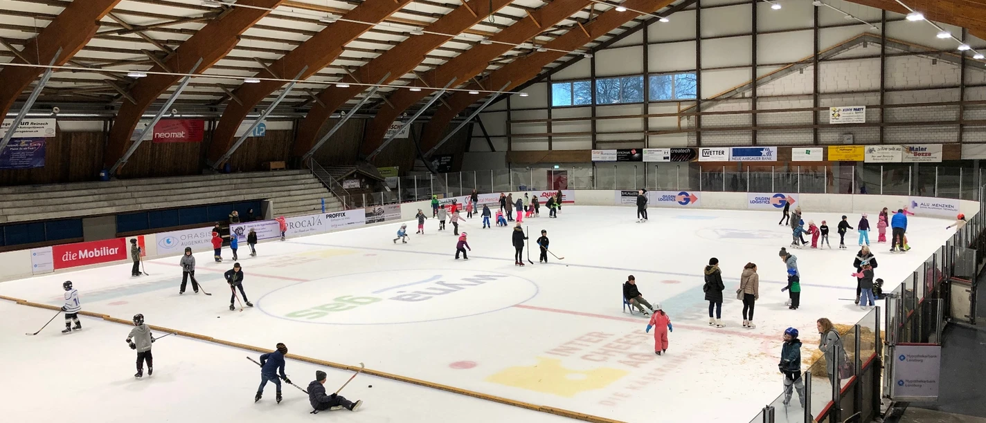 The Oberwynental artificial ice rink is a place to meet and play sport. Whether for a training session, a group event or simply for fun - the ice rink offers something for everyone. Take the opportunity to strengthen your coordination and muscles while having fun.