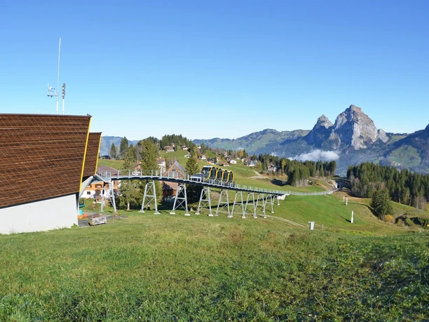 Take the train to Schwyz, train station. From there, continue with bus no. 501 in the direction of Muotathal Hölloch / Stoosbahn and get off at the bus stop "Schwyz, Stoosbahn".