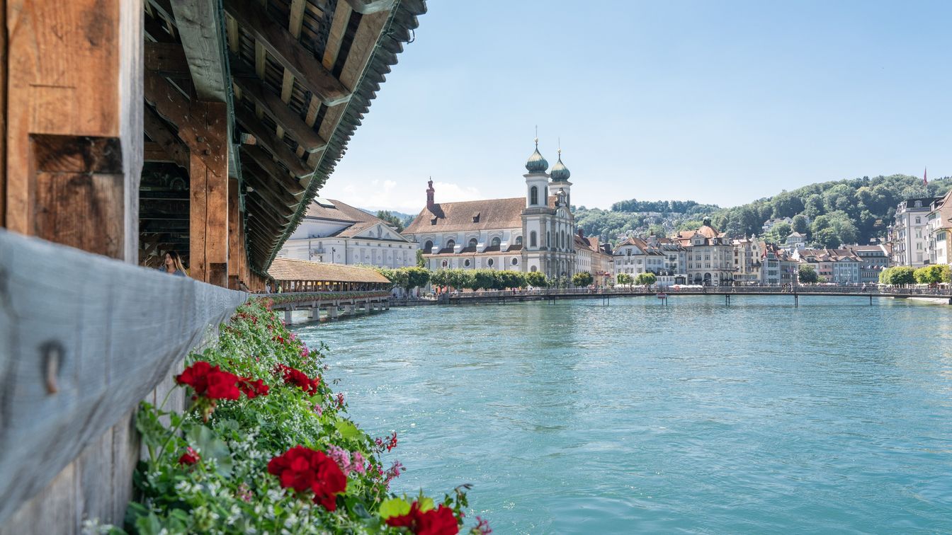 The Jesuit Church stands there, radiant in its beauty, recognisable from afar: situated next to the River Reuss, it is a treat for the eyes.