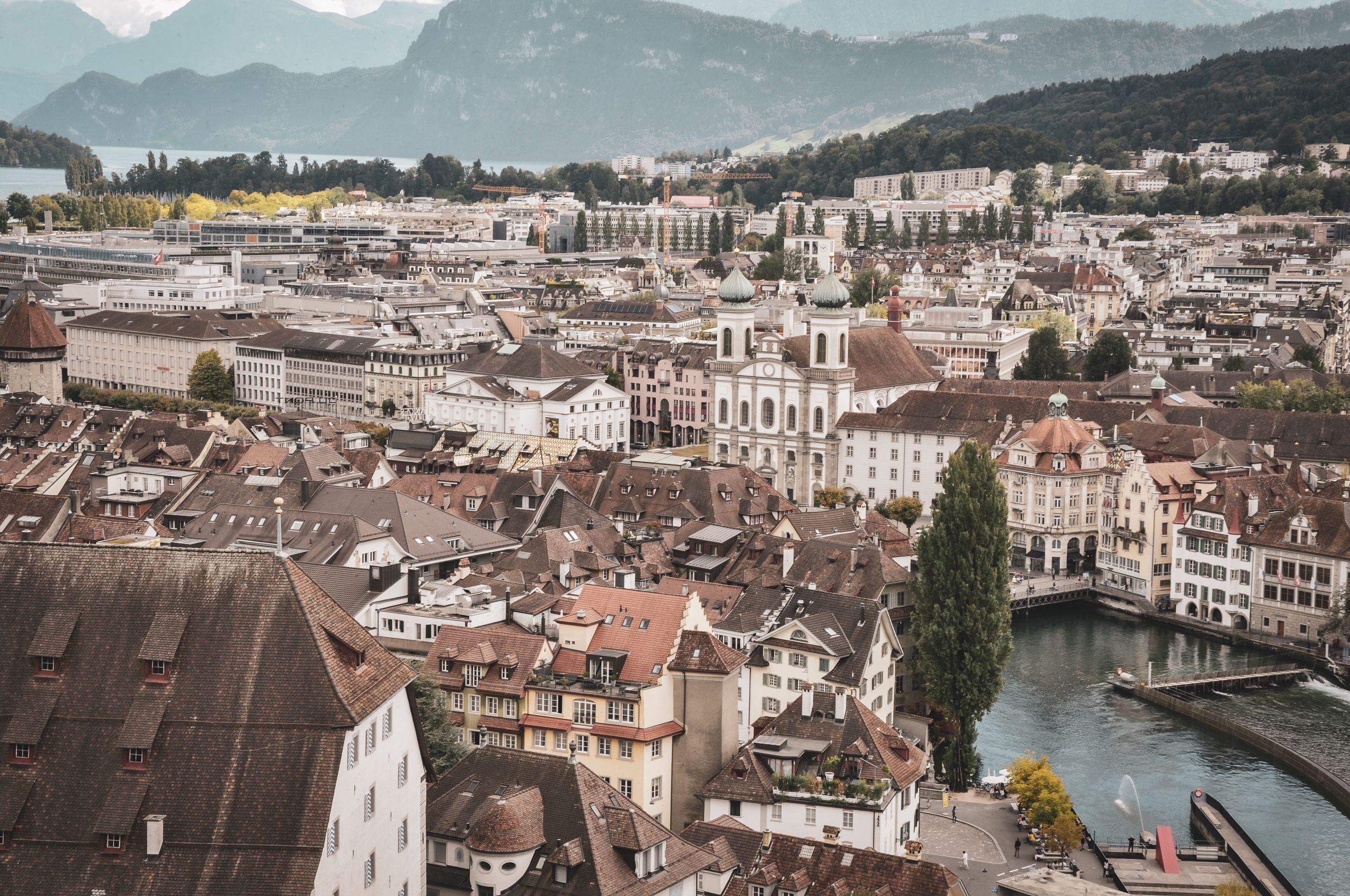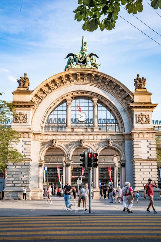 The first mainline terminus was constructed in timber by the Swiss Central Railway Company and completed in 1856. The line led to Lucerne from France and Germany via Basel and Olten in Switzerland. Passengers approached the station via what is today Pilatusstrasse. Designed as a terminus, it occupied a lakeside location next to the landing stages of the Lake Lucerne Navigation Company.