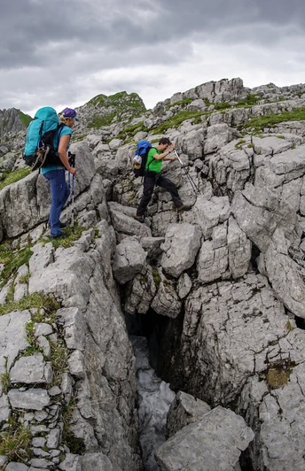 Mountain hiking is demanding. Knowledge of dangers in the mountains (rockfall, risk of slipping/falling, sudden weather changes) is necessary for mountain and alpine hiking trails.