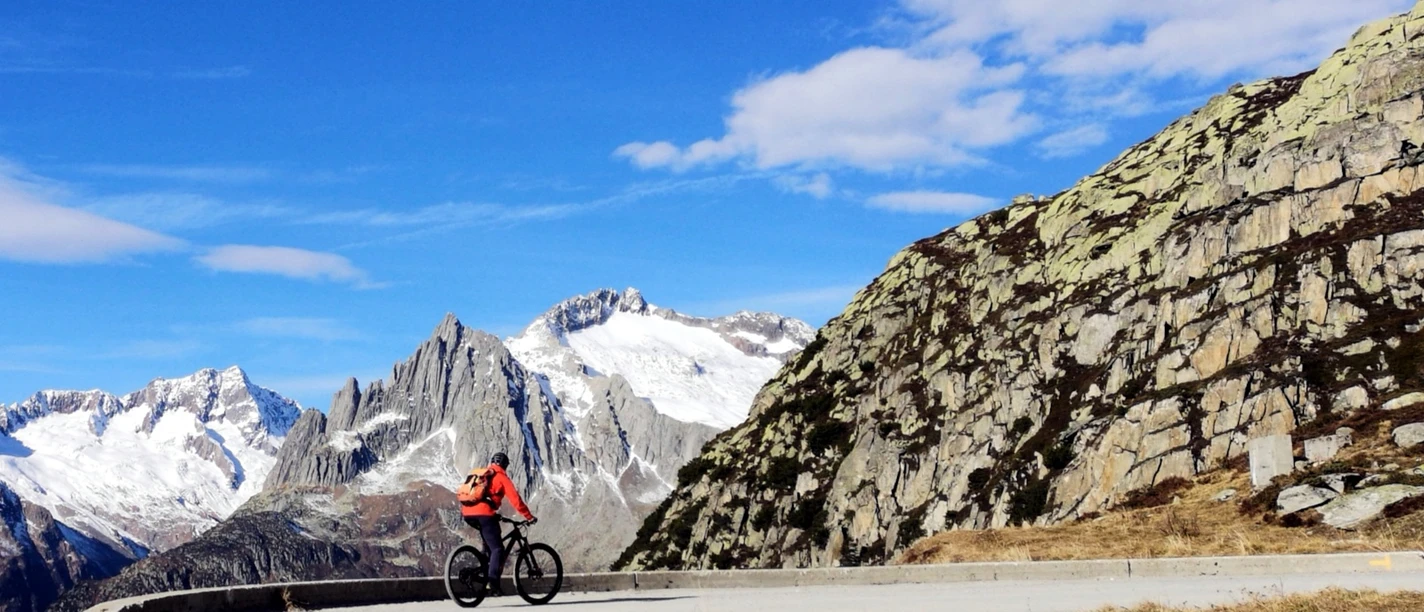 The climb to Gütsch from Andermatt via Nätschen can be shortened by taking the train to the Nätschen station. This way you can also avoid the traffic on the pass road. The ascent is mostly paved but has some steep parts, especially in the second half. The views on top are spectacular as you traverse to Lutersee. Just after the lake a technical downhill starts, the trails is a little eroded but well rideable and fun for good riders.