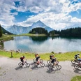 Tour to a beautiful mountain lake, suitable for many riders. The trail downhill is not too challenging but nice as first alpine riding experience with some roots and rocks in the forest. Follow the official route signs.
