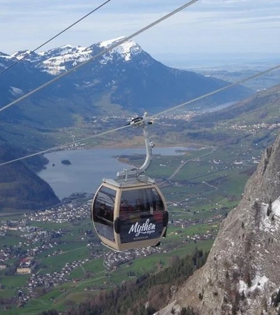 By gondola from Rickenbach to Rotenflue. From there on foot via Holzegg-Alp Zwischet Mythen to the viewpoint Zwischet Mythen and back the same way. Here you find the hiking map.