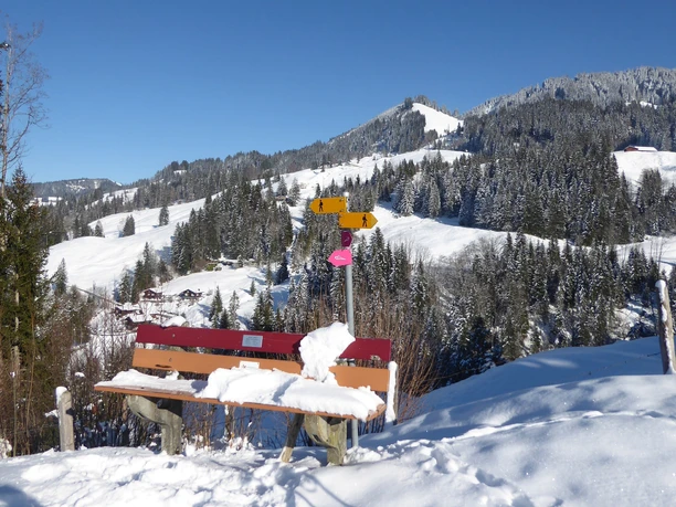 After Biberegg, you cross an idyllic bridge and the little Steiner Aa stream. Soon you enter a small fairy-tale forest. Well warmed up, the path steadily climbs uphill. You can take a break along the way; if you turn around, you can enjoy the wide view over the Rothenthurm raised bog, the largest contiguous raised bog area in Switzerland. The path continues over snowy meadows to Spilmettlen. The most demanding section is now done, and the impressive panoramic view over the Ägerital, the Schwyz basin, the Rigi, and Lake Lucerne rewards you for these efforts.
