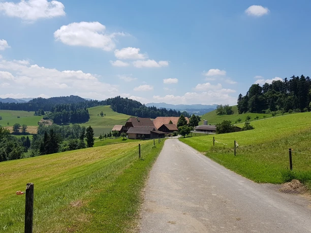 The route starts in Willisau and follows the ridge over the Foothill to the chapel St. Joder. Then it goes uphill to Menzberg, the highest village in the Napf area. From there, it goes steeply downhill into the Fontannental to Paradiesli and then steadily winding uphill again to Chrutoose at 1060 meters. The path continues past the Chrotthütte, SAC hut of the Napf section, over the Gmeinalp and then towards the valley floor through the hamlet Hübeli to the herb village Hergiswil. The last stretch leads leisurely along the Wigger river back to Willisau.
