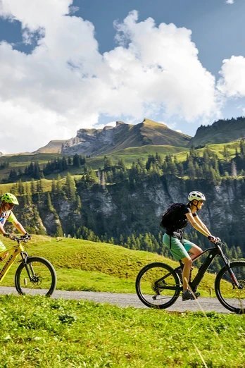 The Brisen route starts in Beckenried and goes via Wissiflue towards Stockhütte. The path leads up over Twäregg via Obere Büelhütte to the Brisenhaus. A good opportunity for a short break before the path goes down again towards Staffel and past the mountain restaurant Tannibüel. The path then goes steeply down via Steinstössi and Nidertistrasse back to Beckenried. The path can also be ridden in the opposite direction.