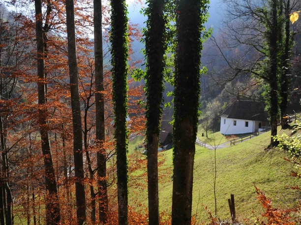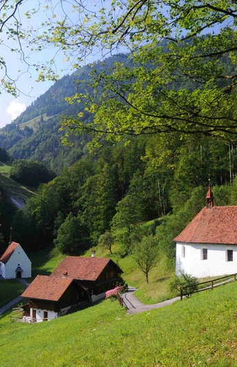 In St. Niklausen, the large stone and unplastered bell tower from the 14th century can be seen from afar. This quiet place of worship stands on a mountain flank offering a magnificent view of Flüeli-Ranft and the Sarneraa valley. The steep descent to the Ranft begins deep down in the Melchaa gorge. The 500-year-old home of Brother Klaus is well worth seeing here. He and his family lived in the house built by Niklaus von Flüe himself until he left to live as a hermit in 1467.