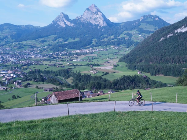 The starting point is the Gasthaus Ochsen in Brunnen, from there you go uphill to Morschach and over the Schwyzhöhe back down to Oberschönenbuch/Unterschönenbuch. The route then continues past the Ingenbohl monastery and back to Brunnen.