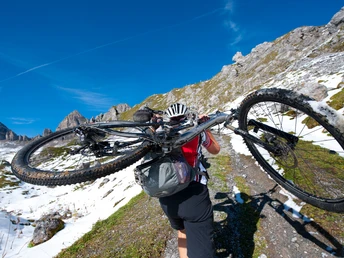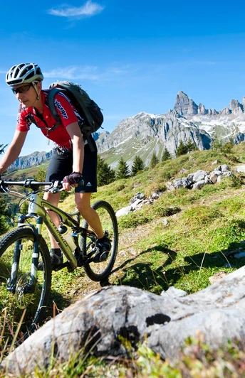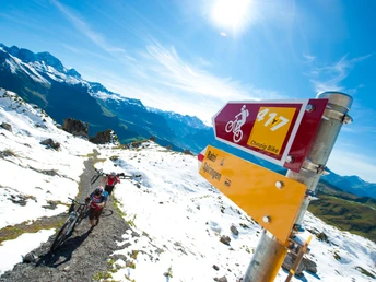 Now you embark on the attractive descent from 2073 to 447 m, whereby the first section up to the Gisleralp is extremely challenging and only technically experienced bikers stay in the saddle the whole way. Then it goes up and down on the wide natural road, which ends with an attractive descent over the Eggberge and the Altdorf forest.