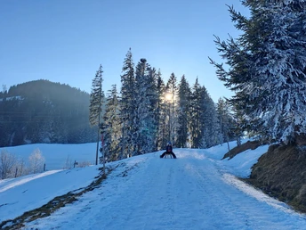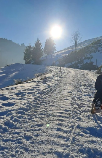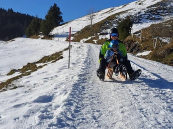 Add a little exercise, some fresh air – and as much action as possible when the sled rushes down the path. The ascent on foot requires some stamina, but the descent afterwards is twice as much fun.