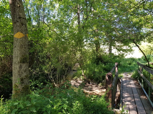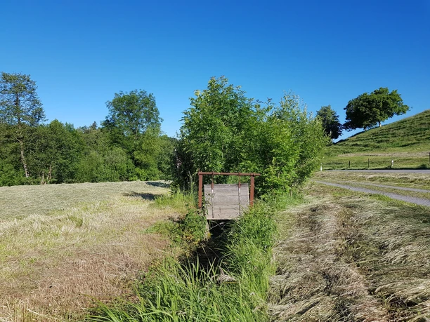The hike starts north at the exit of Altbüron at a parking lot with a fountain and seating. Accompanied by the babbling of the Rot, it goes along pleasant paths through fields and trees heading north. We repeatedly see the small dams typical of the Wässermatten, called “Brütschen.” At a cozy bridge, there is the opportunity to refresh your feet in the stream. After about 30 minutes, Melchnau is already in sight. It is evident by the stately houses that we are now hiking on Bernese soil. We cross the village and turn into the forest towards the castle ruin just before the church. After a short and steep section, the first wall remains come into view. Information boards explain the history of this castle; a barbecue area is also available. The route continues through the beautiful forest to the Ischerhubel. From there, the path follows the border trail downward back to the Wässermatten.