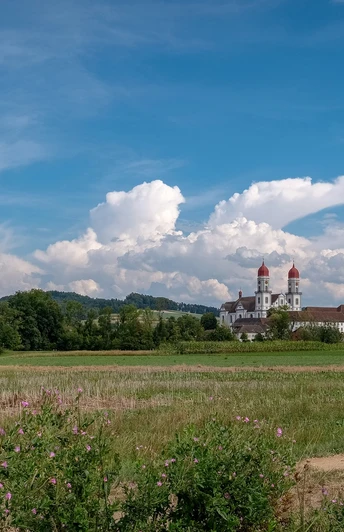 After visiting the monastery church and sculpture park, we return on the same route 84 towards Dagmersellen. Before Dagmersellen, we turn onto route 73, which continues to follow the Wigger stream until the path turns westward and we pass the vineyards of the Bisang winery. Shortly after comes the next highlight, Altishofen castle with its magnificent parish church.