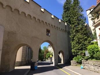 On the way back to Schwanenplatz, we tackle a short climb to the Musegg schoolhouse again. The massive building somewhat hides the view of the Musegg wall, but we do catch one or two views of the city wall. Through the old town, we finally return to the starting point at Schwanenplatz.