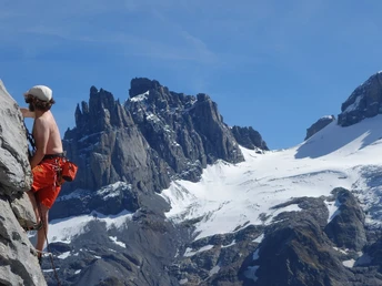 The entrance to the climbing garden takes place after approx. one hour hiking time from the mountain station Fürenalp at 2200 meters above sea level. Optimal even on mild winter days! With over 46 routes in the difficulty levels 3c to 7a the climbing area Wissberg offers a lot of variety. The rock is rough, handy and of maximum quality. Some of the routes offer tricky climbing on beautiful limestone structures and over slabs. The area Wissberg - Fürenalp is registered in the book outdoor Guide Engelberg or in the climbing guide Plaisir Ost.