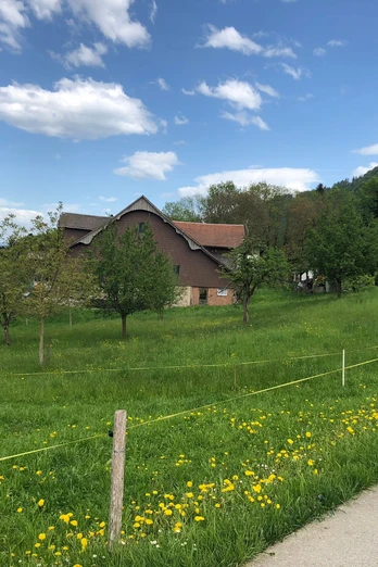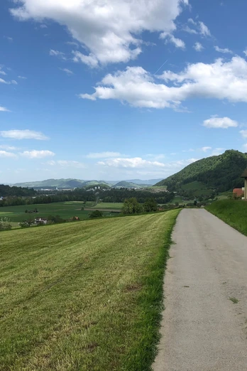 Shortly after the Restaurant Brauerei we turn off into Rothenstrasse at the large car park on the right to gain some more height. The road first leads through a built-up area and then past various farms. The view steadily improves the more it opens to the east and into the Littauerboden. After a short descent, we reach the main road again in the small hamlet of Blatten and continue along it, keeping to the right. It leads steadily uphill. At the hairpin bend we follow the road to the right towards Renggloch. There can be a lot of traffic on this section depending on the time of day.