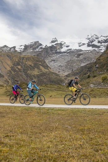 From Engelberg station, the starting point of the Trübsee tour, you go to the valley station of the TITLIS mountain railway. To the left of the station, the tarred Gerschnistrasse (on the road you must expect factory traffic) leads in the direction of Untertrübsee. Steadily rising, but protected from the sun by the forest, the road meanders to Alp Untertrübsee. The first stop for the thirsty bikers is already waiting there. Here the forest thins out and offers a view of the mountain world. Turn left at the first turn-off onto a wide gravel path. From there strong legs are required. The coarse gravel makes high demands on stamina and driving technique. The view of the Titlis and the knowledge that the crystal-clear Trübsee awaits the tired biker's feet make you forget the strains. When the Trübsee comes into view, you have almost reached the height and you can already see the top station of the gondola lift Engelberg-Trübsee-Titlis. On the right shore of Lake Trübsee, you take the paved road towards the end of the tour. Before returning to the valley, it's worth putting your feet up on one of the deck chairs on the large terrace of the Berghotel Trübsee and enjoying a cool drink with a view of the magnificent mountain world. Back to the valley and to the starting point of the tour, you follow the same route.