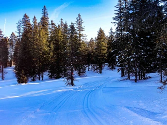 From the parking lot, you can reach the trailhead about 300 meters away on cross-country skis. The Fröschenseeli route leads through rather flat and lightly forested terrain on its first half, passing by the Andresen hut to Schwendi-Kaltbad, a former spa resort. Via the Schlierentalhut, the turnaround point at Fröschenseeli is reached, which is somewhat hidden in the raised bog. The birches, mountain pines, and the frozen moor lake evoke holidays in the far north. Sparkling snow lies on heather and moss cushions. The Titlis, Hochstollen, and Wetterhörner mountains dominate the mountain range.