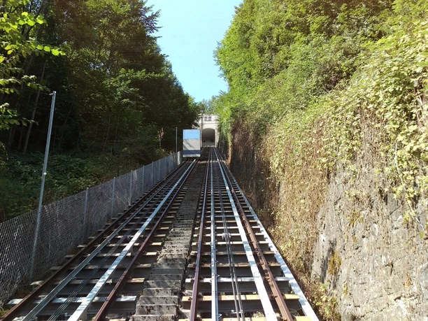 With the Gütschbahn, you reach the Hotel Gütsch, from where you can enjoy a breathtaking view of the city of Lucerne and Lake Lucerne. From there, the path gently ascends through the Gütsch forest. Soon you reach Sonnenberg, offering a fantastic view of Kriens, Lucerne, and the Pilatus. A detour to the Ränggloch is worthwhile. From Hotel Sonnenberg, the path leads through the forest in about 30 minutes to the highest point of Sonnenberg and from there down to the Ränggstrasse. On a narrow path, you can smell the Ränggloch. A pedestrian bridge crosses the narrow gorge. From Ränggloch, the path takes about 20 minutes to the bus stop in Obernau. From there, the bus comfortably takes you back to the city.