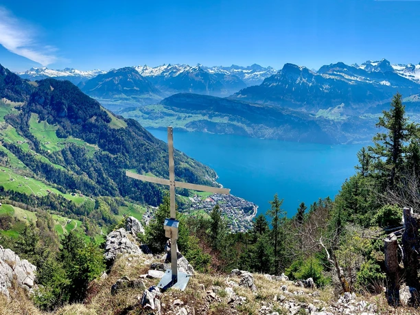 At Ober Urmi, an interesting path begins. It truly goes over stock and stone up to the highlight. It is well developed and secured with ropes at some steeper parts. Once at the top, the cross of the Vitznauer Stock stands on the left side and a few meters further to the right the cross of the Gersauer Stock. From both peaks, we have a breathtaking but completely different view, as if standing on two different mountains! Congratulations!Â