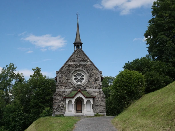 The path continues through the turnstile to the Choltal bridge (made from an old crane boom). On Brennwaldstrasse, you can visit the Heiligkreuz Chapel (built around 1710) with the famous Dance of Death panel. The chapel's bell is already over 600 years old and therefore older than the chapel itself. The path continues through the Sagendorf (Änäd Egg) along the main road over the Egg back to the starting point at the Emmetten, Post post bus stop. If you are already a bit tired in Sagendorf, you can conveniently take the post bus back to the starting point from the Emmetten, Sagendorf post bus stop.Â