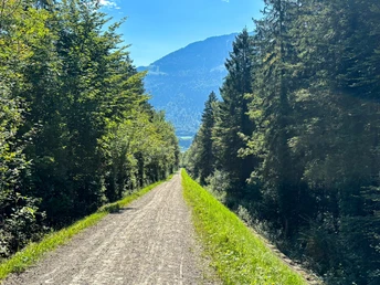 As soon as the forest thins out, the view opens up to the Laui Valley, a real highlight. From here, you calmly follow the stream back to the starting point in Giswil. The route is continuously marked with route number 294 Grossteilerberg Bike.