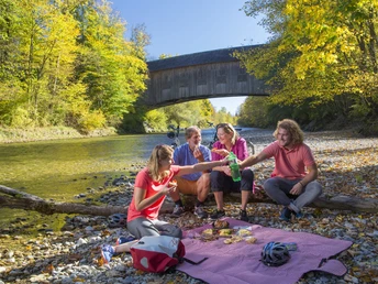 Already in 2003, the Heart Route ventured this traverse between Willisau in Lucerne and the Emmental. The stage has since gained cult status and is considered worryingly addictive. It transports travelers on winding paths through a landscape hardly known. From Willisau, you enter the Oberaargau through Zell in Lucerne, a atmospheric part of the canton of Bern that increasingly transforms into the Emmental. The hills become higher, the ridge formations more impressive, the farmhouses more lush. By the latest in Affoltern, the route runs to a scenic crescendo that can hardly be surpassed. Wide views of the Alps and the Jura frame the cascade of hills spreading out before us. Via the Gotthelf village of Lützelflüh, you reach Burgdorf along the Emme riverbank path, whose proud castle towers over the valley and welcomes you.