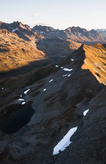 The well-known ski touring mountain is also worth hiking in summer. After the Furka pass summit, the beautiful high route leads past idyllic mountain lakes up to Stotzigen Firsten. The descent proceeds leisurely over a broad grassy ridge down into the Witenwasser valley. In the last stretch, follow the tracks of the Furka steam railway to Realp. The area invites a solitary hike in a sparse alpine landscape.