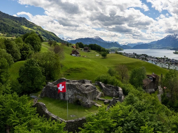 From Immensee via Dorfstrasse up to Hauptstrasse, keep right and cross the street. At the next junction keep left towards Hohle Gasse. From Hohle Gasse follow the marked route towards Gesslerburg. Descent from Gesslerbug to the village (main square), from there to the lake, along the quay to Kuessnacht railway station.