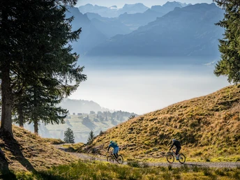 There, leave the road to the left. After about ten minutes, you find yourself on the Chüeboden. This is followed by the last descent to Eigen; via Trachslau and Frauenkloster Au it gently slopes back to Einsiedeln. As a variant, you can reach Einsiedeln directly from Chälen via Wäni.