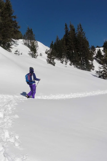 The snowshoe tour and description were developed in cooperation with local mountain and tour guides. It is only a route suggestion and is neither signposted nor protected against alpine hazards. It does not pass through wildlife protection areas and avoids obvious danger spots with good snow and avalanche conditions.