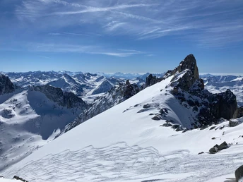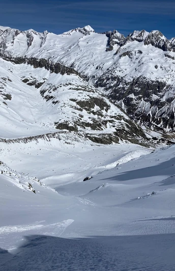 To the right of the dam, some peaks form a chain that only allows a connection to the other side via Lochberg. Lochberg is a popular route destination as soon as the road to Göscheneralp is open. The steep northern slopes promise descent pleasure until early summer.