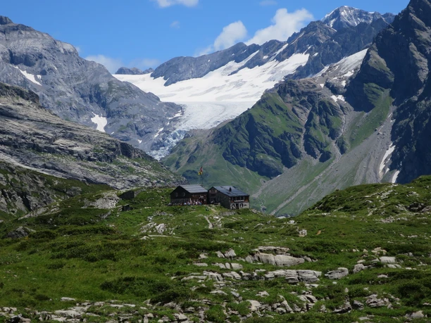 We continue the hike into the rear Maderanertal on the slightly descending path section towards Stäfel, Öfeli, and Tritt. From Tritt, the path leads down in about a dozen hairpin bends to the SAC Hotel Maderanertal near Balmenegg. In the good old days, the SAC Hotel Maderanertal enjoyed international fame thanks to its location, and even today the accommodation is always worth a stop due to its idyllic location. From Balmenegg, the signpost directs us to Balmenschachen and through the Kuhalp Stössi. On the historic valley path along the wild Chärstelenbach, we reach the valley station of the Golzern cable car, the destination of the hike. This route offers magnificent views of glaciers and the surrounding majestic three-thousand-meter peaks.