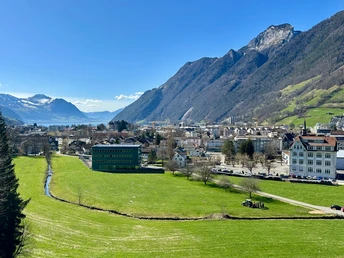 And the monastery trail leads you to one of the most beautiful viewpoints in the municipality of Ingenbohl. From the monastery hill, you enjoy a wonderful panoramic view: on one side, the valley basin of Schwyz stretches out, crowned by the Kleine and Grosse Mythen mountains. On the other side, you are enchanted by the view over Lake Lucerne extending up to Seelisberg and the Urner Alps.
