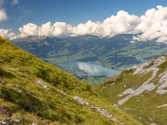 To reach the start of the route, take the vintage funicular and CabriO cable car from Stans up to the Stanserhorn. High up at around 1900 m above sea level, you can see almost the entire size of Lake Lucerne and the surrounding mountain world.